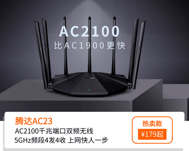 满足未来2-3年光纤升级需求,腾达AC23采用全千兆端口设计,满足1000兆以内光纤接入,充分发挥1000兆以内高速宽带优势。