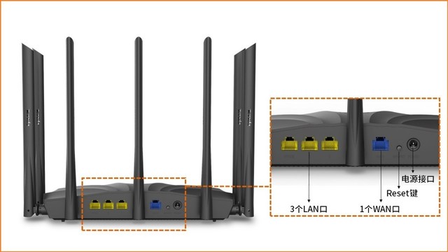 其中LAN端口主要用来连接局域网,WAN端口用来连接外部网线,Reset复位按钮用来恢复出厂默认设置。